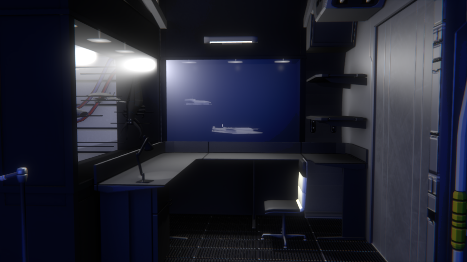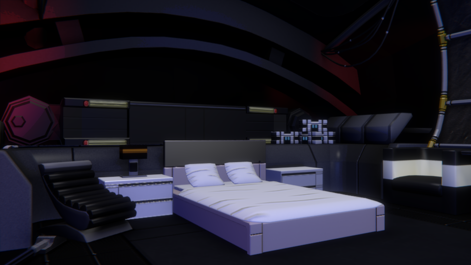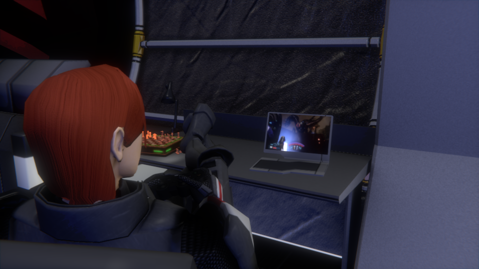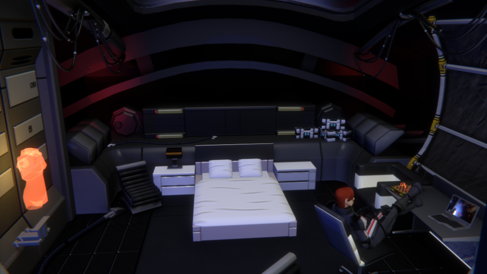 Reconstitution de la cabine du commandant Shepard, dans le jeux vidéo Mass Effect.